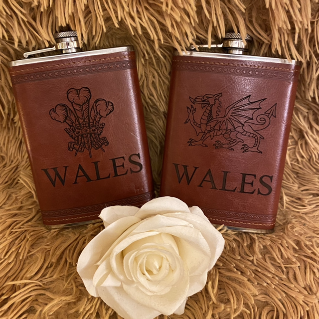 Brown faux leather with the mighty Welsh Dragon and WALES engraved design