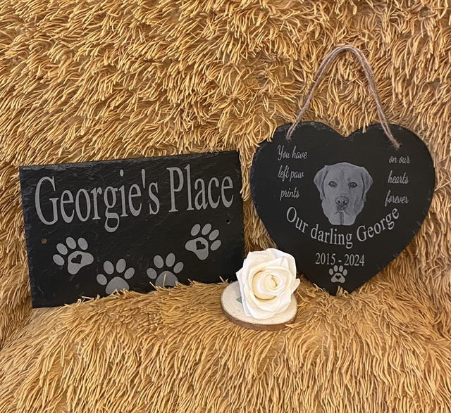 A wonderful and beautiful keepsake to remember your beloved Pets. These A4 30x20cm slate plaques are engraved and totally individually and uniquely designed personalised and created especially for you and your keepsake memory.