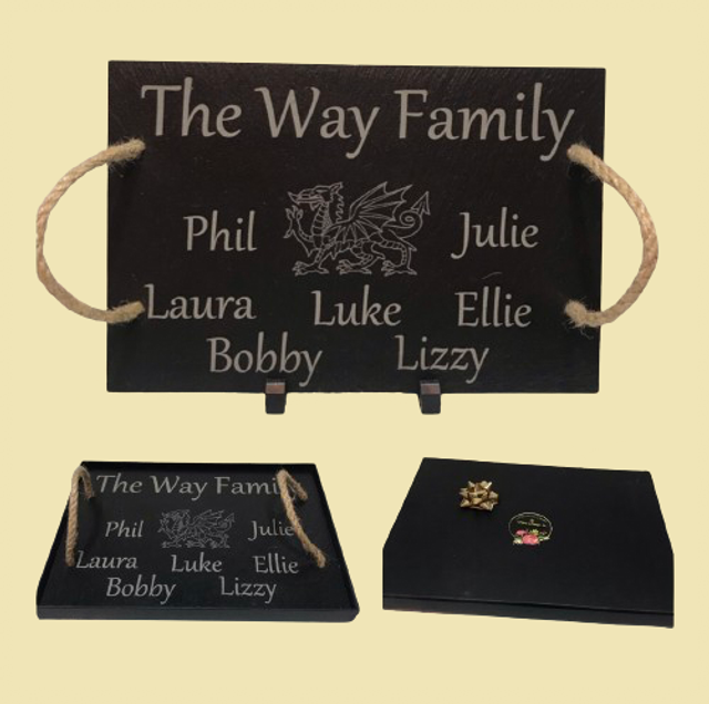 Slate Engraved Tray Medium with Chrome or Rope Handles